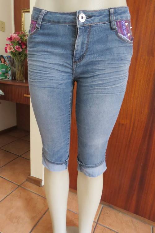 Ultra sexy cropped jeans in blue denim by `Tango` in size 32/8. Low rise. Pockets back + front.