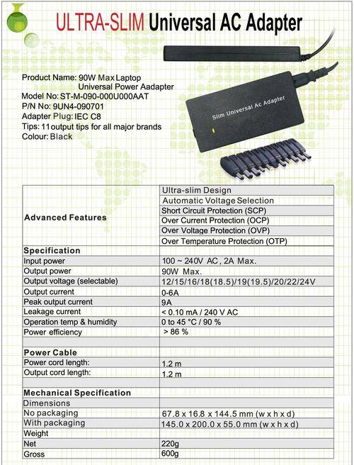 ULTRA-SLIM NOTEBOOK UNIVERSAL AC ADAPTOR 90W