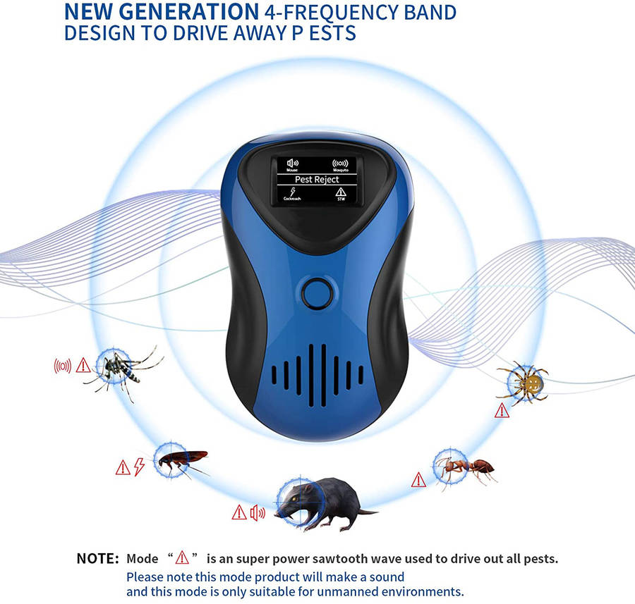Triple effect produce different ultrasonic bands and change continuously different frequencies, making pests like mice, flies, mites, bed bugs, etc. can not "adapt" and "immune" to the changing ultrasonic frequency and escape from your house.