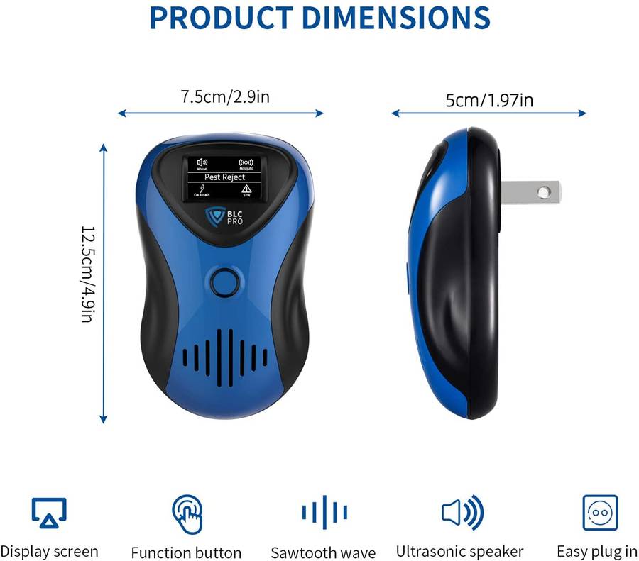 BLCPRO Ultrasonic Pest Repellent is safe, non-toxic and non-radiative to human body. With advanced ultrasonic control you can eliminate pests with humane treatment but harmless to children or animals. And you don`t have to kill mosquitoes with chemicals and clean up their remains afterwards.