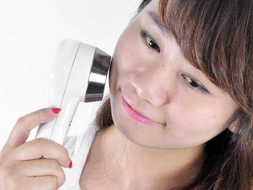 Using Ultrasonic technology, the “Bodysonic” massager cleanses, massages and nurtures your skin to effectively minimize age spots and skin imperfections. By optimizing the water flow to your skin cells, it will also help to reduce wrinkles and streamline your face. In addition, the “Bodysonic” can be used to relax tensed muscles and to reduce inflammations by applying constant movement with the treatment head on the sore area.