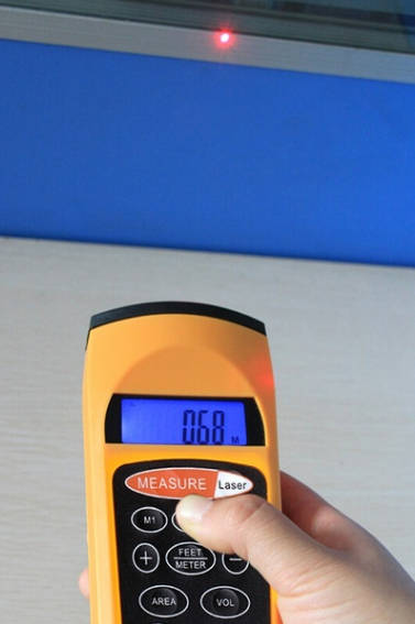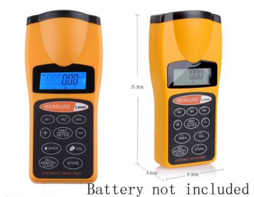 The ULTRASONIC DISTANCE METER LASER POINTER is a perfect tool to quickly know the distance, area and volume of a room! It can measure distances in a straight-line from 1.5 feet o 60 feet. Your distance measurer transmits ultrasonic waves to a point you want to measure. Afterwards, it measures the time taken by the waves to reflect and then calculates and re-transcribesthe distance.
