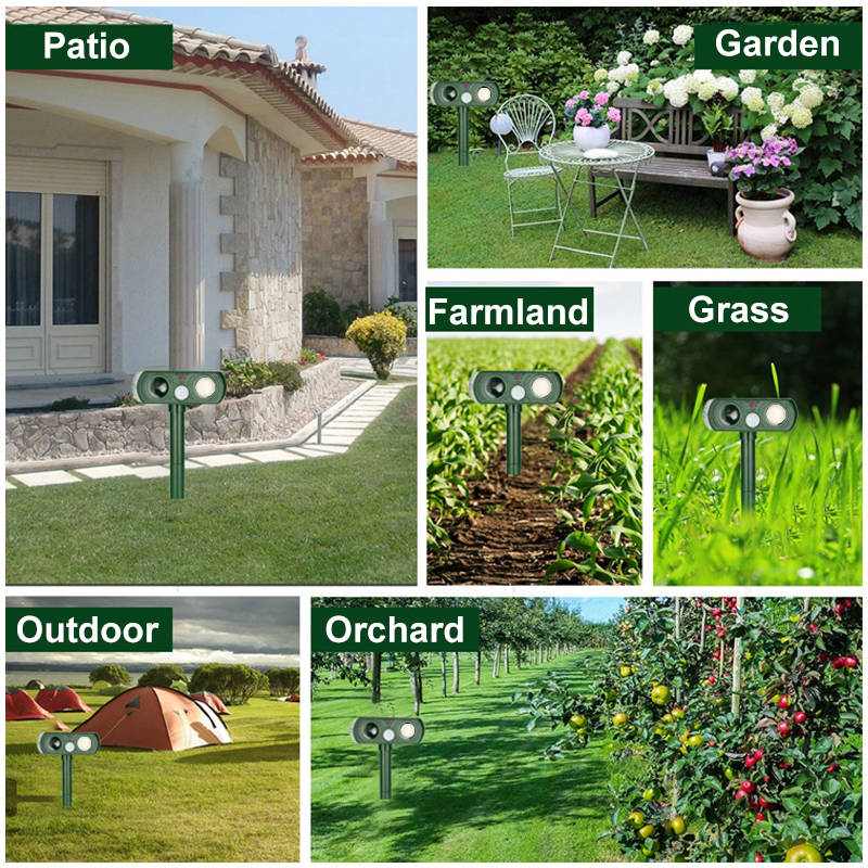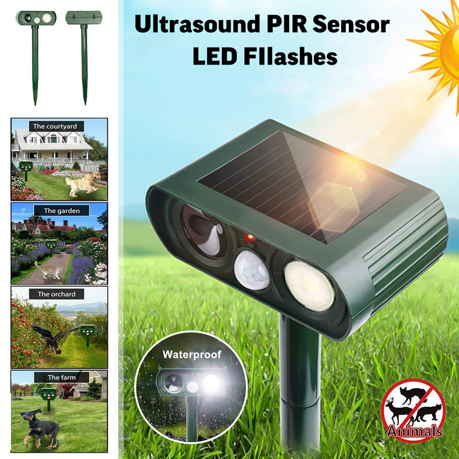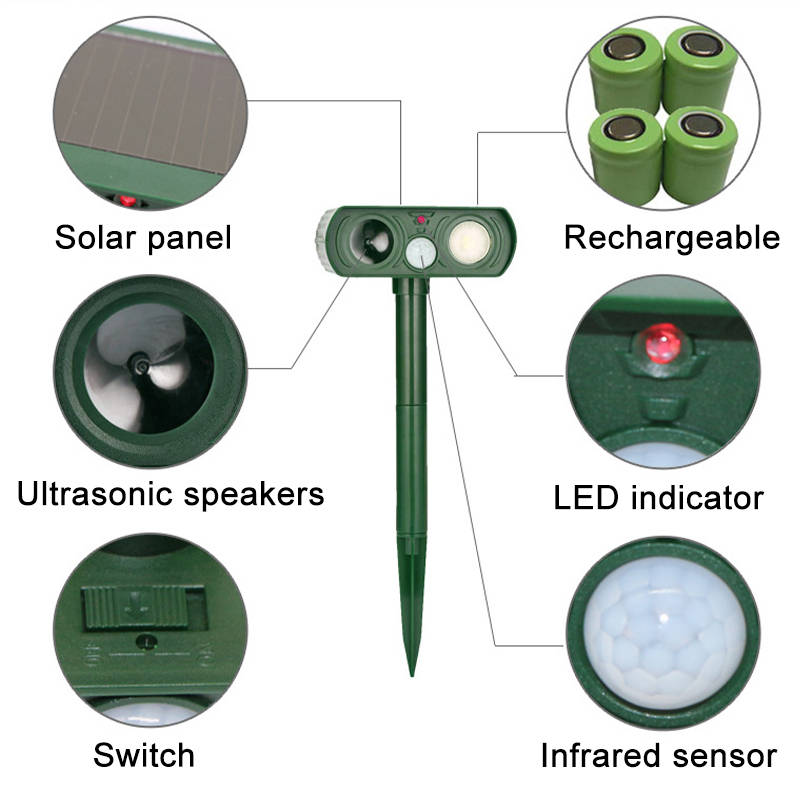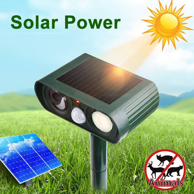 Ultrasonic Solar Power Animal Repeller IPX4 Waterproof PIR Ultrasound Sensor Fox Cat Dog Repellent for Outdoor Garden