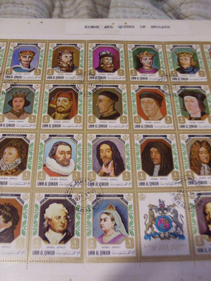 UM AL QUWAIN KINGS & QUEENS OF ENGLAND FULL SHEET OF POSTAGE STAMPS...1971