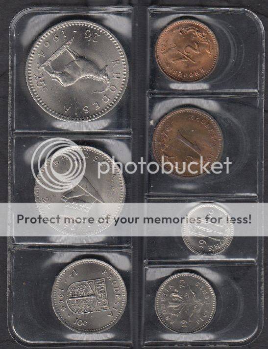 Uncirculated Coin Set of Rhodesia from the 1960s and 1970s