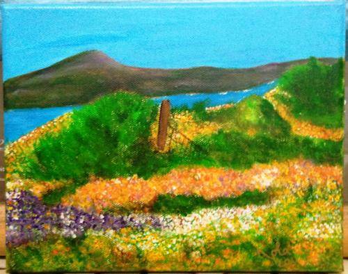 UNFRAMED ORIGINAL PAINTING ON STRETCHED CANVAS (WEST COAST FLOWER) SIGNED BY ARTIST NOLA PRETORIUS