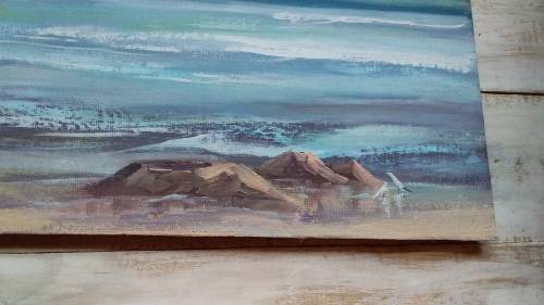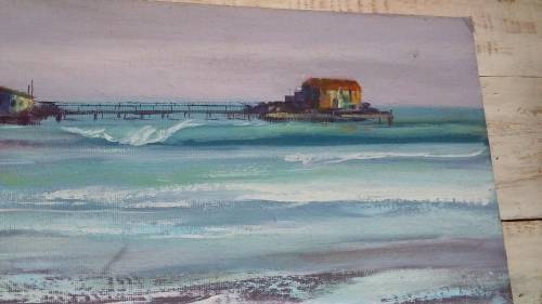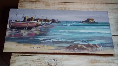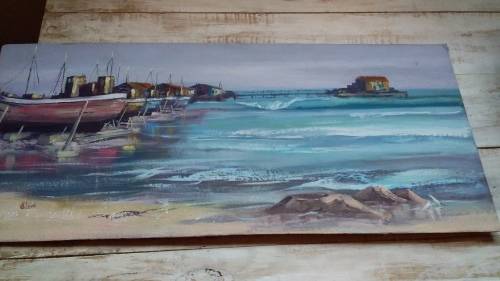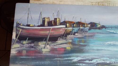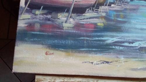 Unframed Painting of Boats by B Clark on Hardboard