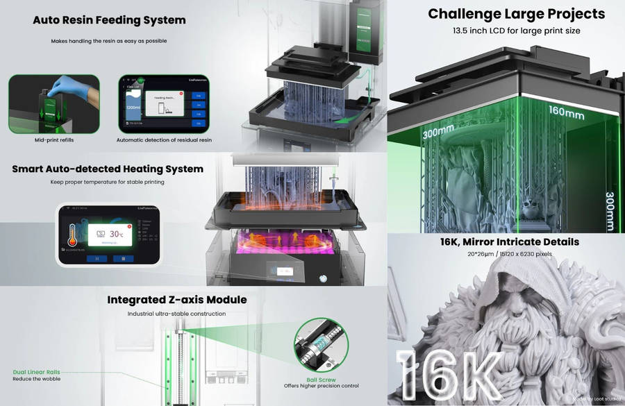 Introducing the GK3 Pro resin printer from Uniformation with a great size build volume, an auto-resin refill system and a heated chamber to ensure the best print quality.