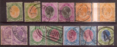 A total of 13 VFU single stamps in good condition. This includes SACC9a, 10b, 11a, 12a, 13a & 14a. All together with a value of at least R 500.00.