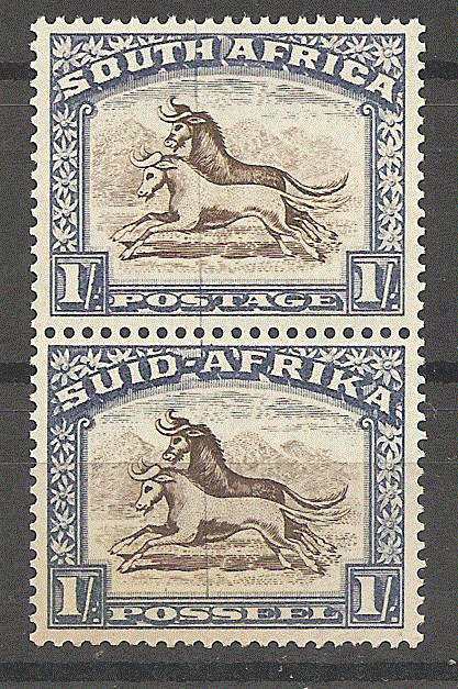 An unmounted mint vertical pair of UHB 50 with the variety V1 (Thin blue line running vertically through stamps) clearly visible on both stamps. Please note that these stamps are in pristine condition with no visible flaws and therefore of great collector's value.