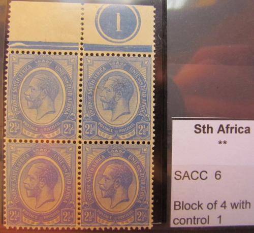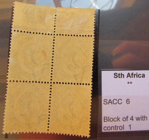 UNION 2 1/2d Control Block hinged on margin Mint Value = R325.00