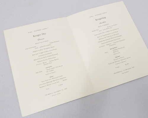 Union Castle Safmarine RMS Windsor Castle "Kruger day" menu - 10 October 1968