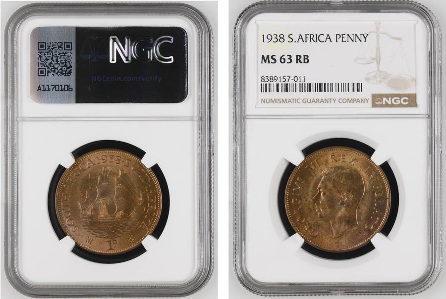 Union of SA: 1 Penny 1938 NGC MS63 RB