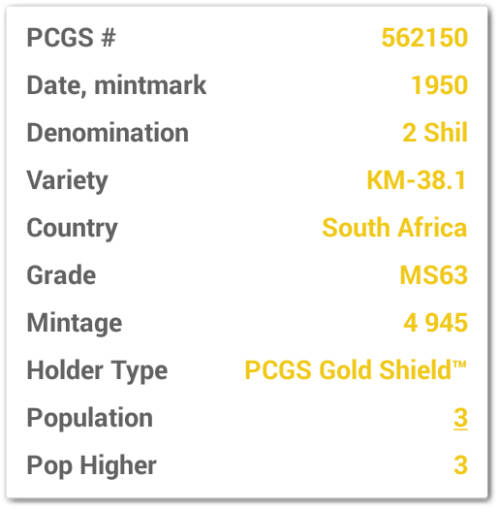 1950 2 SHILLING PCGS MS63