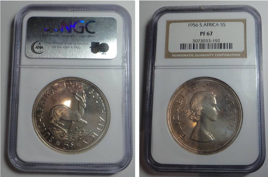 Union of SA Crown (5/-) 1956 NGC PF67