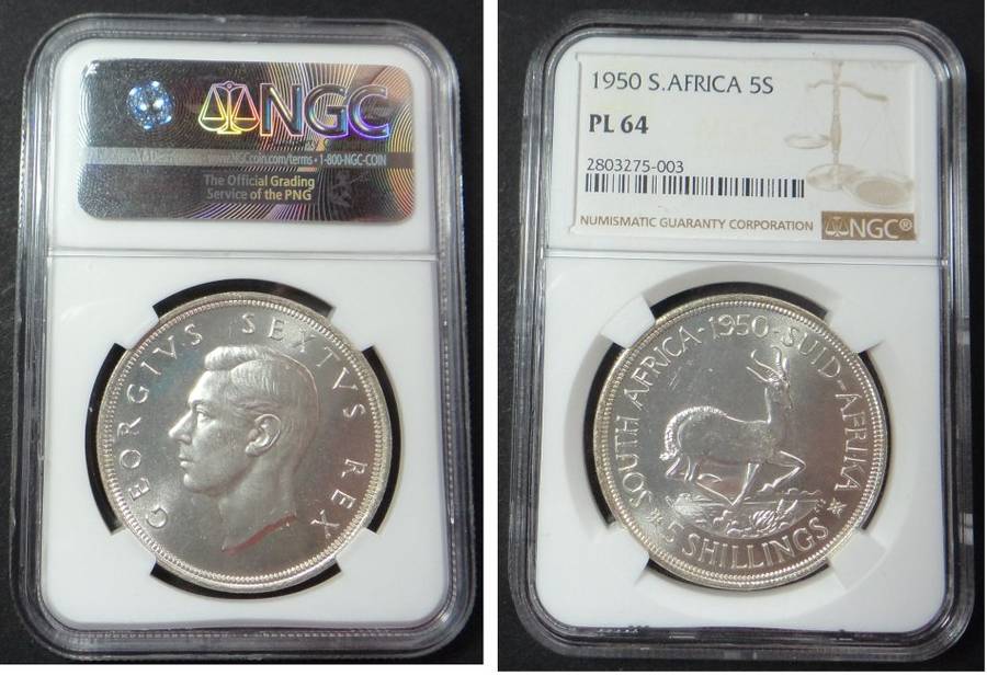 Union of SA: Crown (5/-) of 1950: NGC graded PL 64