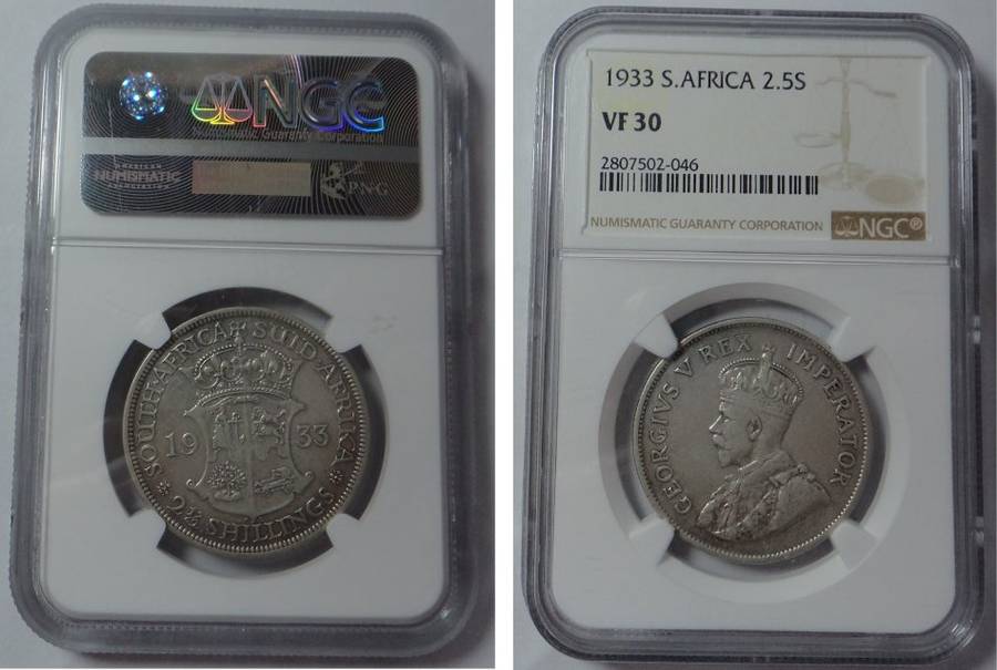 Union of SA: Half Crown of 1933, NGC VF 30