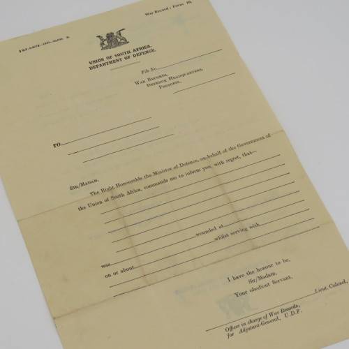 Union of South Africa 1941 letter to inform mother that her son was wounded - DP Raats