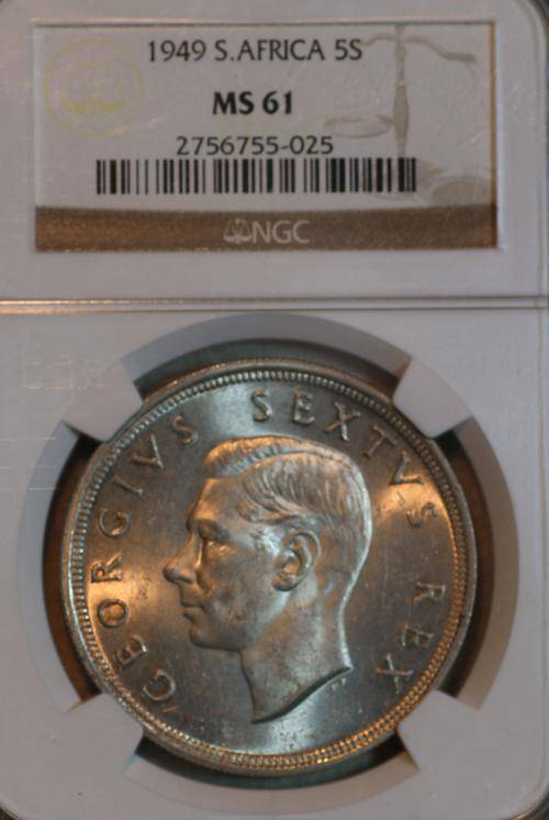UNION OF SOUTH AFRICA 1949 FIVE SHILLINGS (5S) NGC GRADED MS61