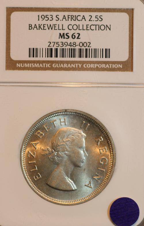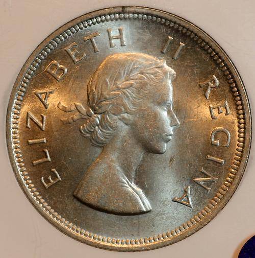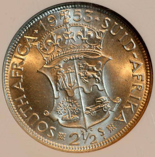UNION OF SOUTH AFRICA 1953 HALFCROWN NGC GRADED MS62