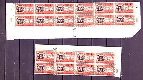 1954, 23th February.Centenary of Orange Free State, 2d 2 blocks, one with one arrow block of four and control block of four Cylinder 104 1, 2nd block with one arrow block of four, 2 control blocks of four Cylinders 1 104 block has been folded