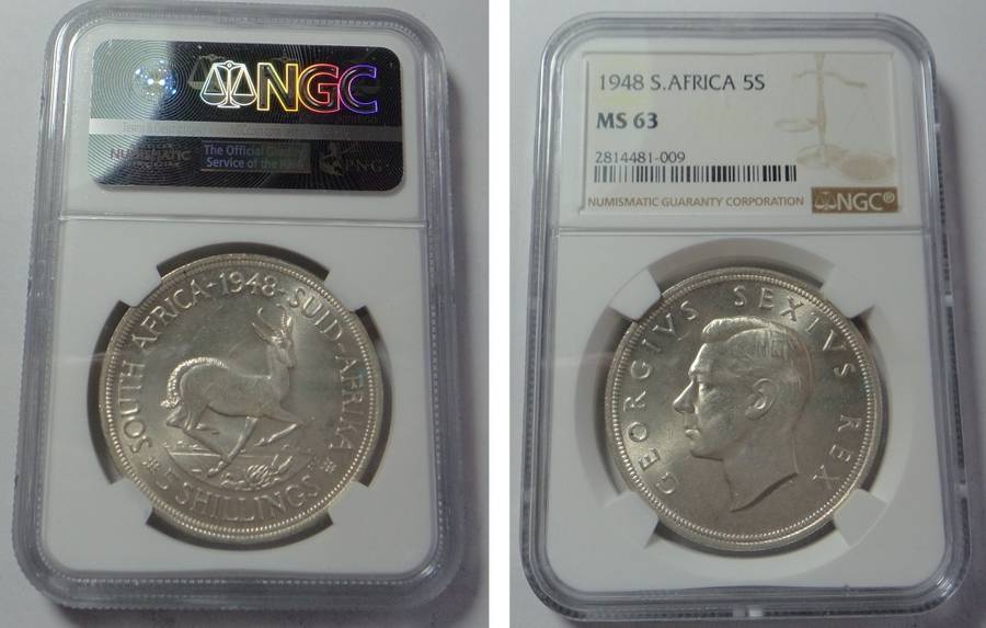 Union of South Africa: Crown (5/-) of 1948, NGC MS 63
