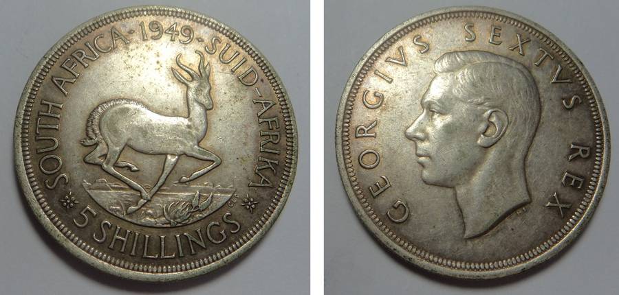 Union of South Africa: Crown (5/-) of 1949 (3 available)