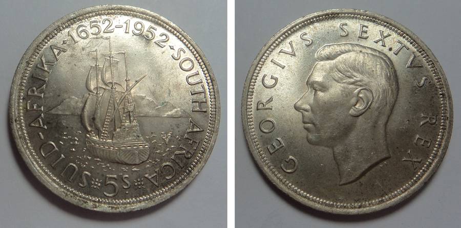 Union of South Africa: Crown (5/-) of 1952 (7 available)