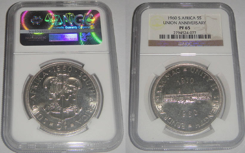 Union of South Africa : Crown (5/-) of 1960 : NGC graded PF 65