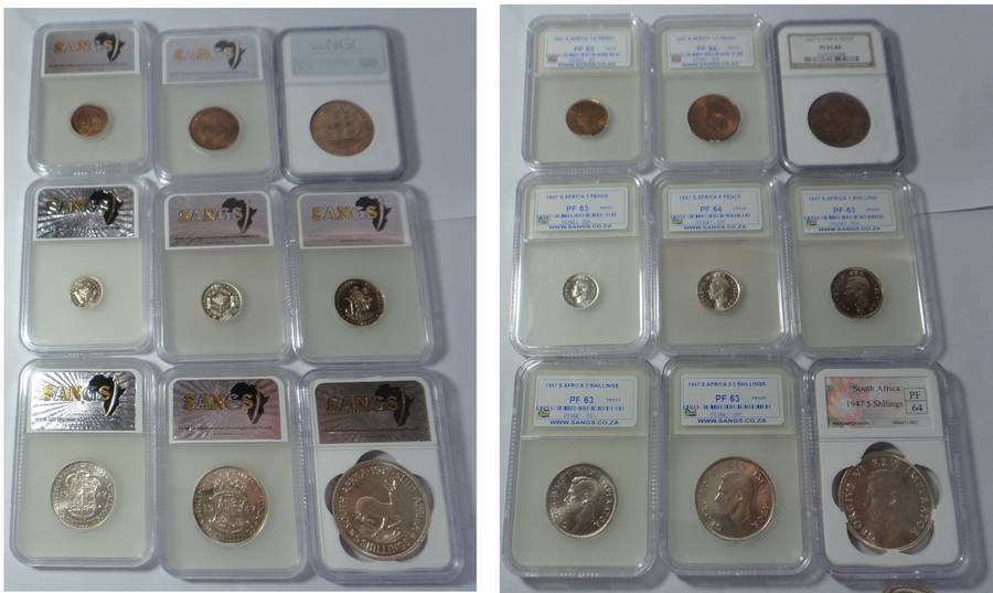 Farthing (PF 63) Half Penny (PF 64) Penny (PF 63 RB) 3-Pence (PF 63) 6-Pence (PF 64) Shilling (PF 63) 2-Shillings (PF 63) Half Crown (PF 63) and Crown (PF 64).