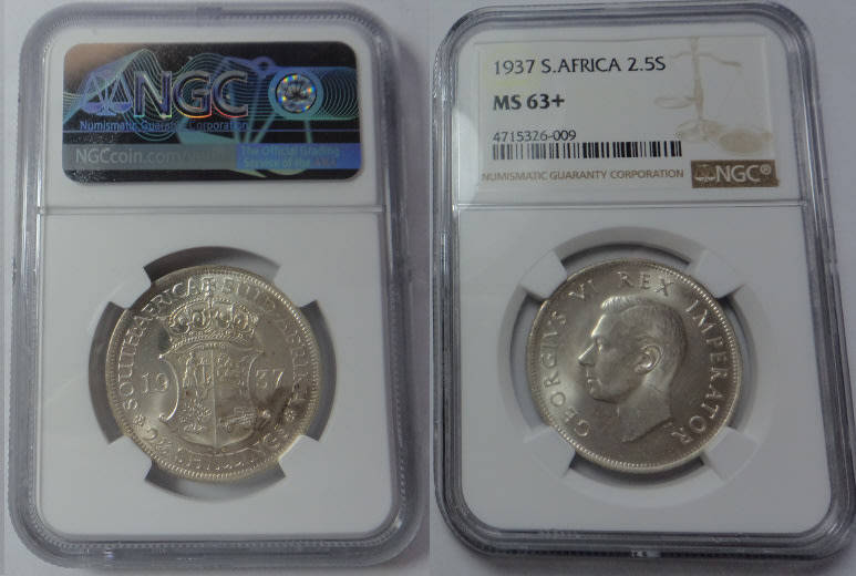 Union of South Africa: Half Crown (2/6-) of 1937: NGC graded MS 63+