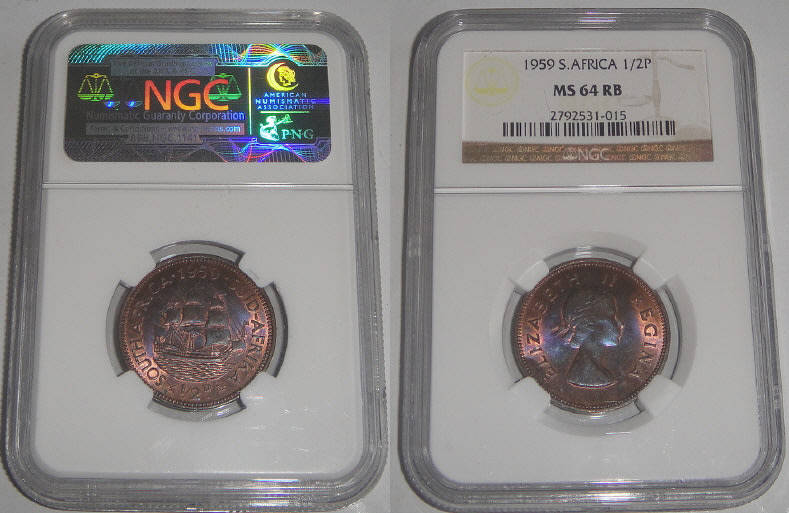 Union of South Africa : Half Penny of 1959 : NGC graded MS 64 RB