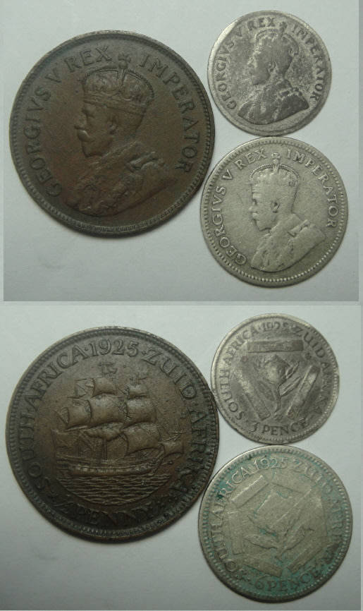 Union of South Africa: Half Penny, Tickey and Sixpence of 1925