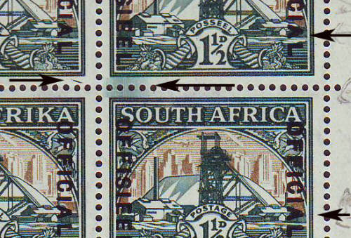 SACC 26a 11/2d Inverted Wmk. Bottom right corner'block superb U/M - Varieties 1/ " Doctor blade flaw " 2/ " Diagonal line in