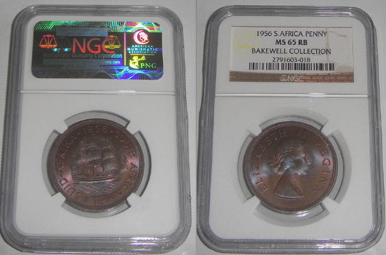 Union of South Africa : Penny of 1956 : NGC graded MS 65 RB