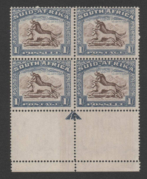 Union of South Africa. Screened one shilling Arrow Block. Fine unmounted mint.