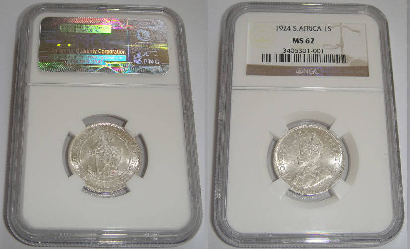 Union of South Africa : Shilling (1/-) of 1924 : NGC graded MS 62
