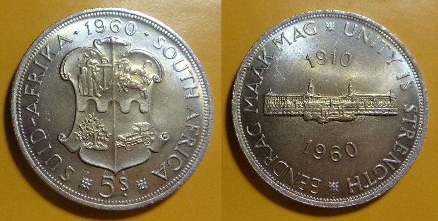 Union of South Africa: Silver Crown (5-Shillings) of 1960 (Mint State)
