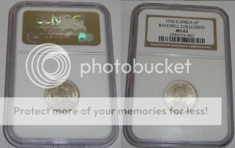 Union of South Africa : Sixpence (6d) of 1960 : NGC graded MS62