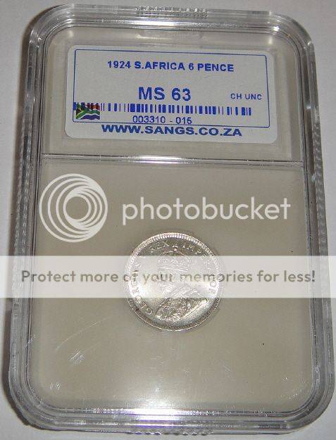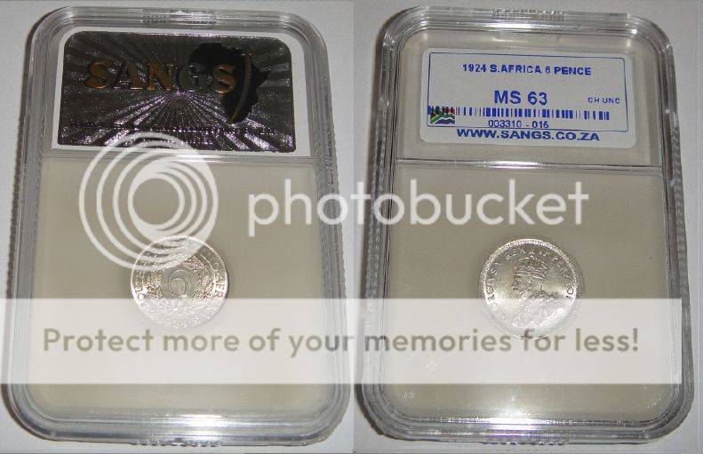 Union of South Africa: Sixpence of 1924 : Sangs graded MS63