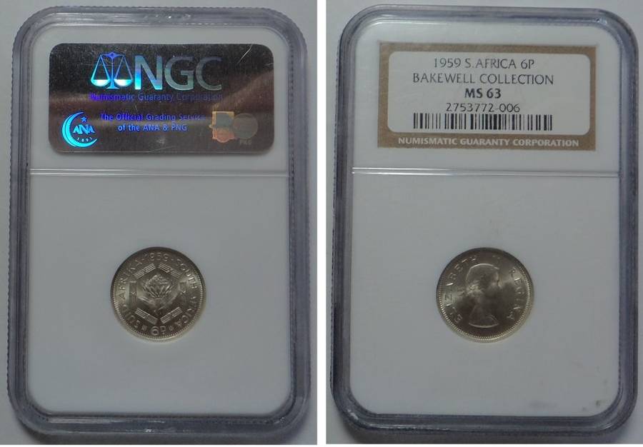 Union of South Africa: Sixpence of 1959: NGC graded MS 63
