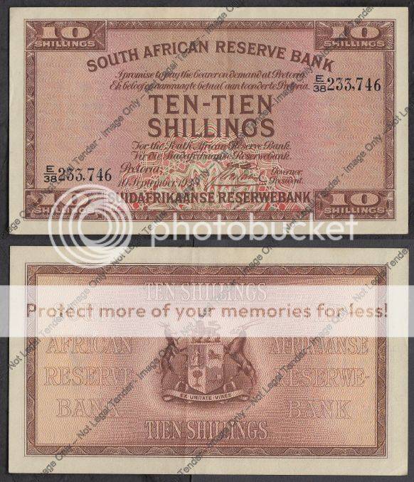 Union of South Africa: Ten Shillings: J Postmus : 10 September 1938 : Extremely Fine