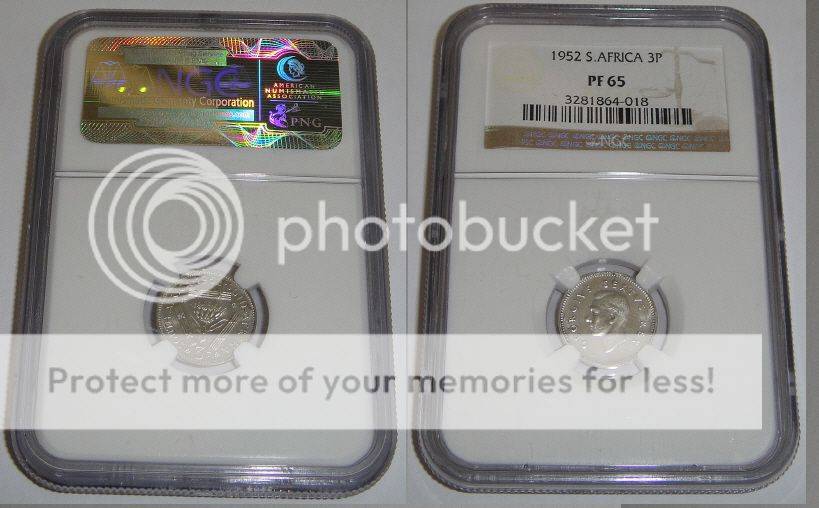 Union of South Africa : Three Pence (3d) of 1952 : NGC graded PF65