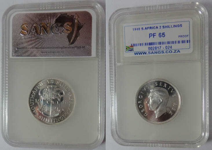 Union of South Africa: Two Shillings (2/-) of 1948: Sangs graded PROOF 65