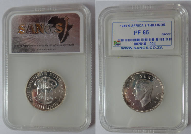 Union of South Africa: Two Shillings (2/-) of 1949: Sangs graded PROOF 65