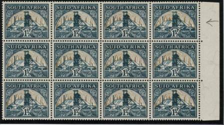 UNION SA 1936 1 1/2d MNH MARGINAL BLOCK OF 12 SACC 57 BROKEN CHIMNEY/FAINT HEAD GEAR/INV WMK