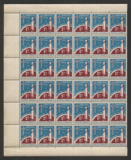 UNION SA 1951 CHRISTMAS LABELS (WITH VALUE) MNH PART SHEET OF 36