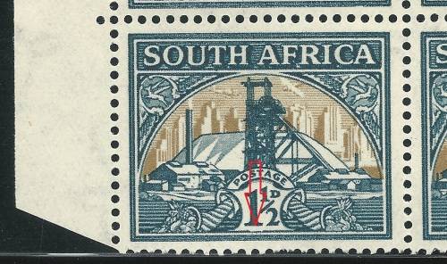 UNION VARIETIES - 1 1/2d Goldmine B4 UHB V11 Row 9/1 - Thinned frame line below 1. Upright Wmk MNH