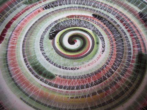 Sgraffito (in Italian "to scratch") is a decorating pottery technique produced by applying layers of color or colors (underglazes or colored slips) to leather hard pottery and then scratching off parts of the layer(s) to create contrasting images, patterns and texture and reveal the clay color underneath. The layer(s) of color can be underglazes or colored slips. Below is an example of one technique and what can be achieved.