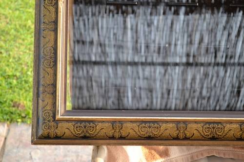 Beautifully decorated box frame behind glass